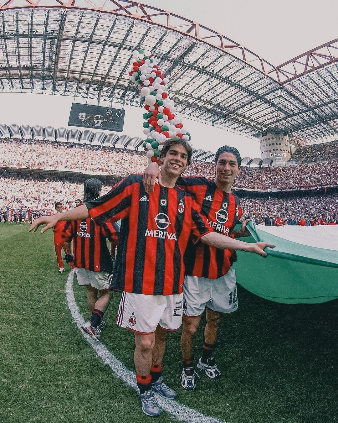 Say San Siro and the images come flooding back. Ronaldo, the real one, back to camera, number 10 on his Inter shirt, walking out toward a pitch that already knows what's about to happen. Kaká, arms wide open, rossonero confetti falling around him, the stands packed to every corner behind. No matter what colours you wear in this city, the stadium gives you everything.